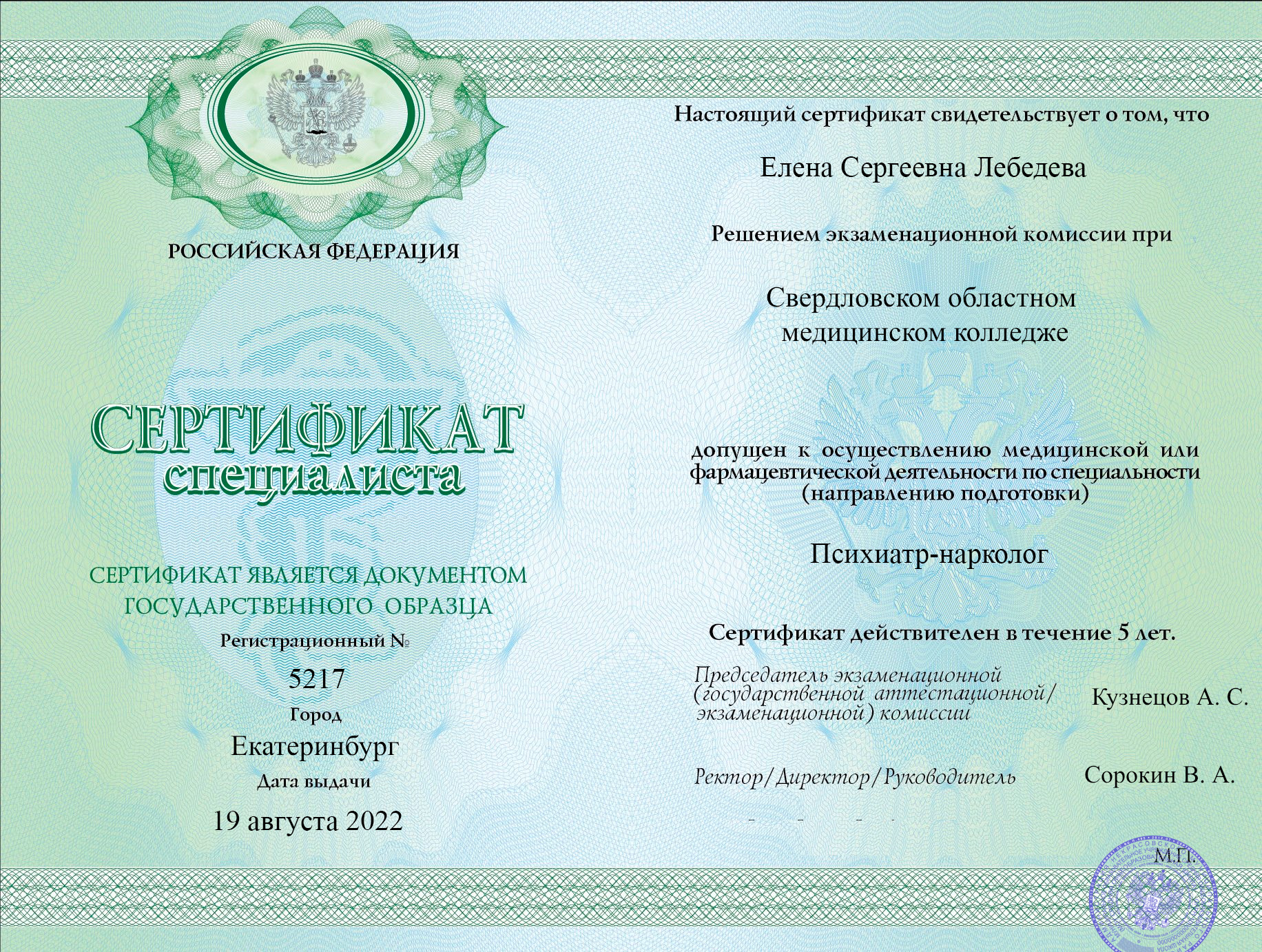 Елена Сергеевна Лебедева врач нарколог клиники доктора Стукаловой в Семендере